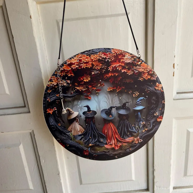 "I've put out plenty of Halloween decorations before, but nothing has sparked as much curiosity as this door sign. The silhouettes of the witches seem quiet in daylight, but once the evening light hits, they almost come alive—like shadows from an old story stepping across my porch. More than once, neighbors slowed down just to ask where I found it."